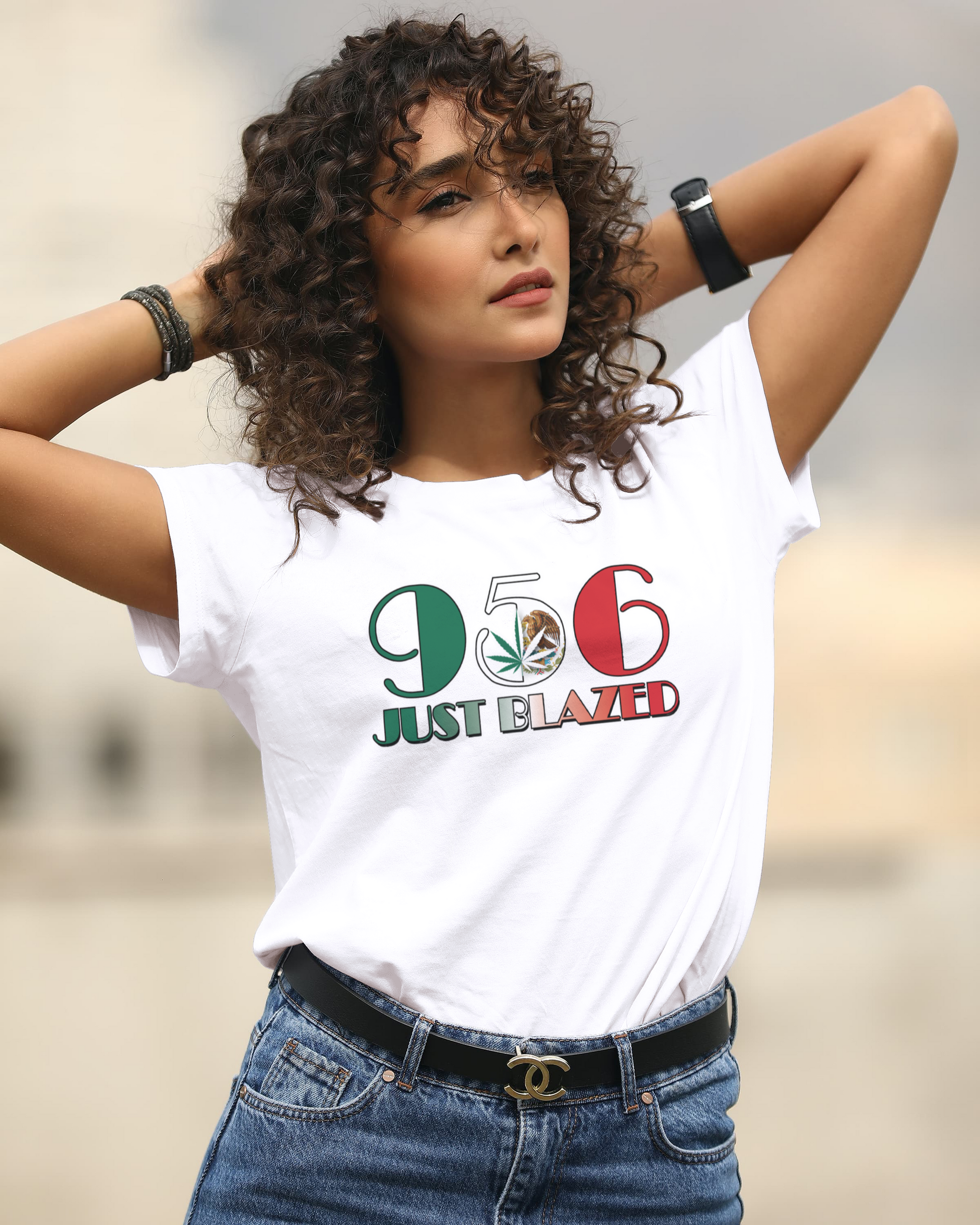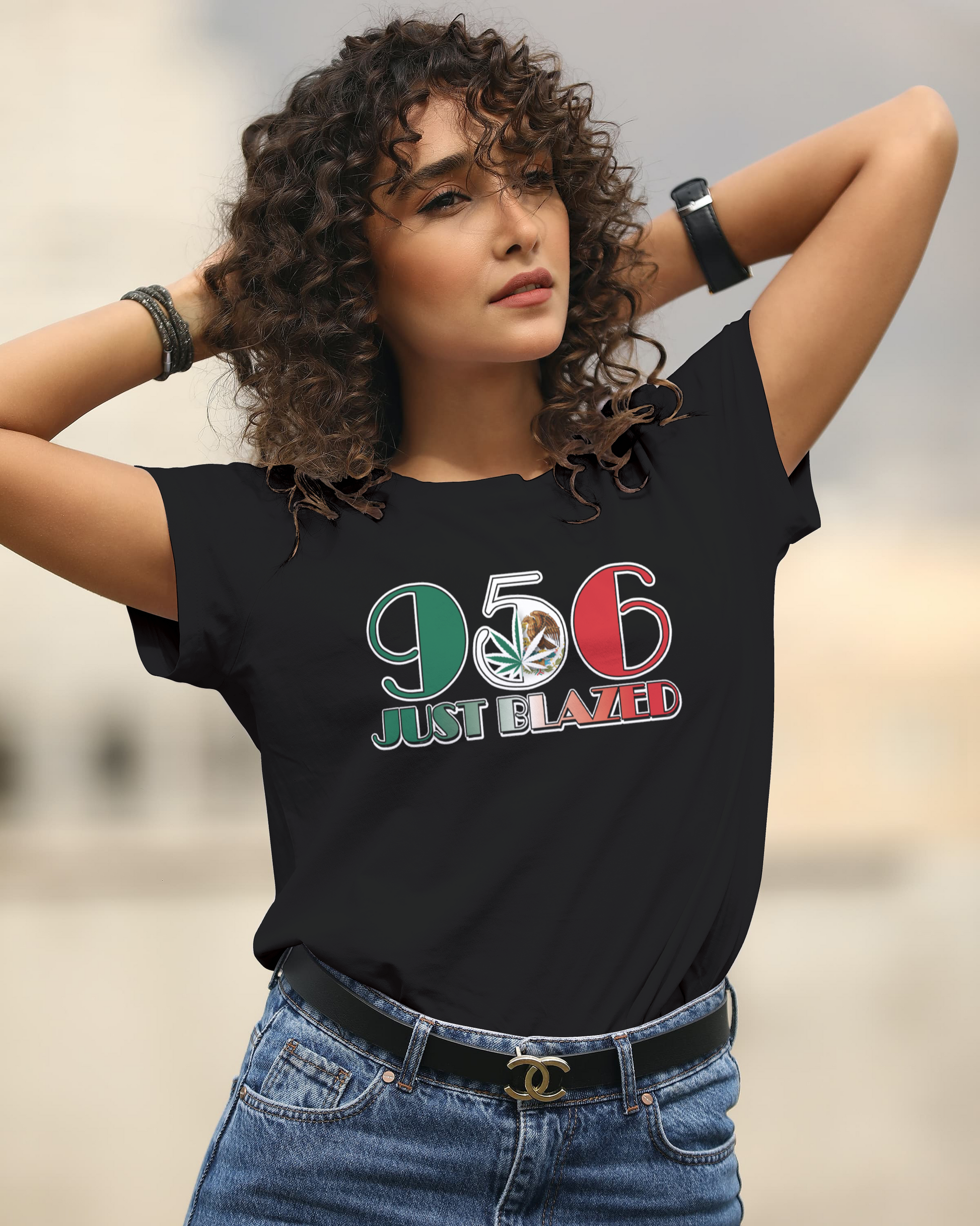 Represent your local fighter with the Official Giovanna Saenz 956 area code shirt. This custom Just Blazed Clothing design showcases Mexico's colors and features Direct to Garment printing for a high-quality look. Show your support for LA SIRENA and TeamBlazed with this collaboration.